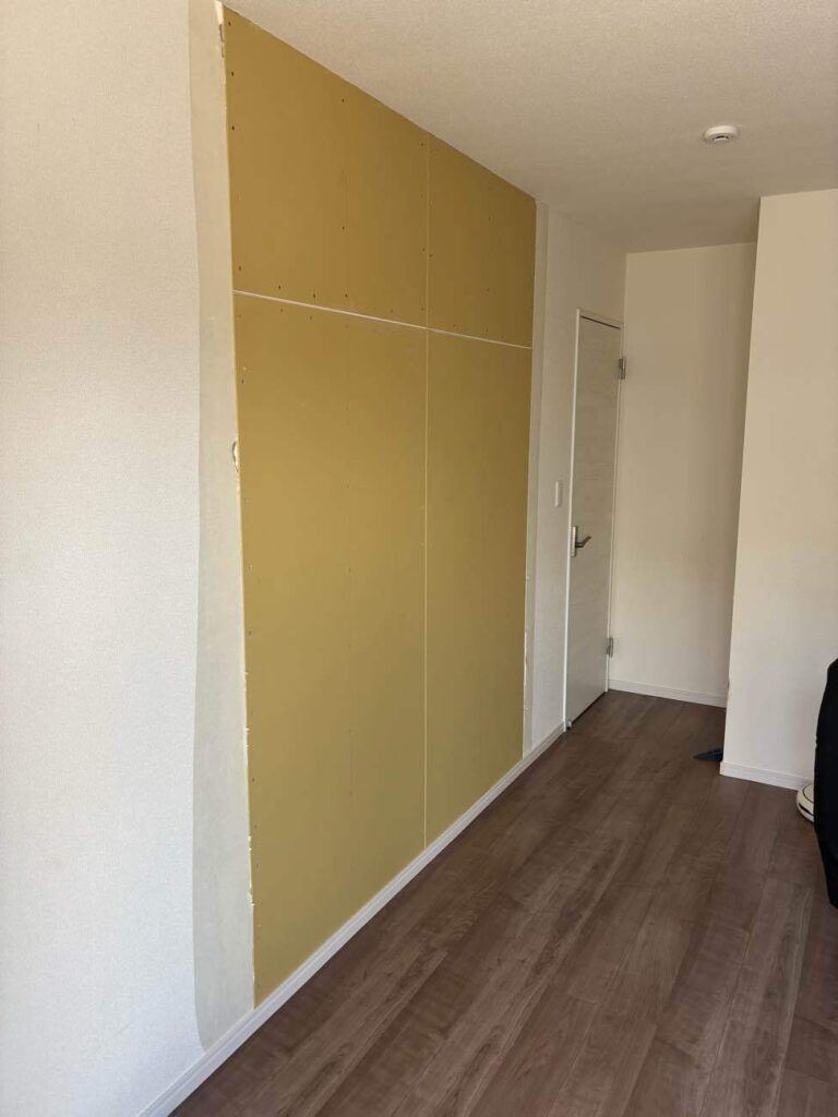 2階のインナーバルコニーへ出るための掃き出し窓を無くし、引き戸を造っていきます。